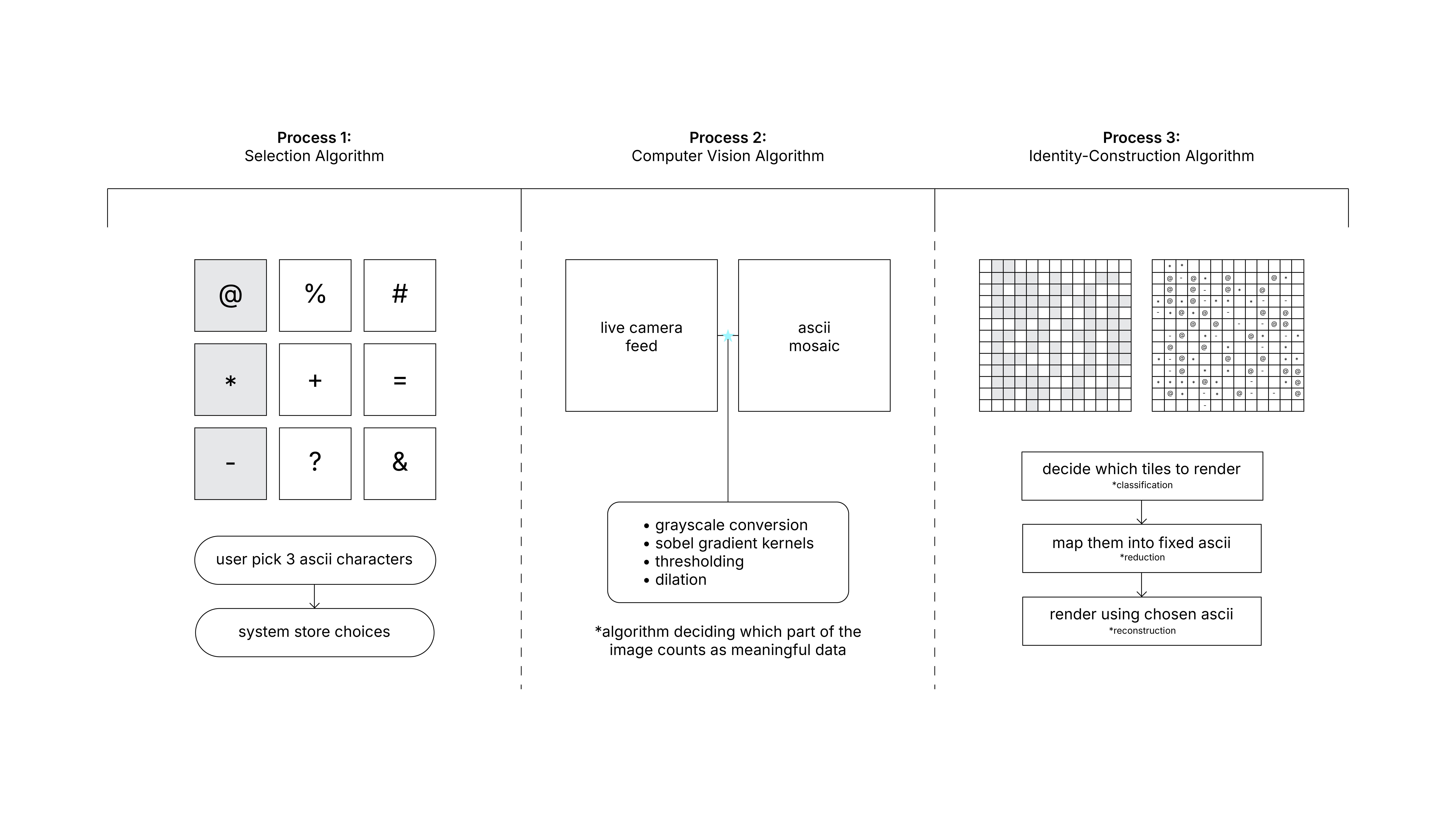 ID://ASCII examines how algorithmic identities are constructed from the smallest actions we make online. The experiment begins with a simple task: users choose three ASCII characters. These become the only data the system is allowed to “know” about them.