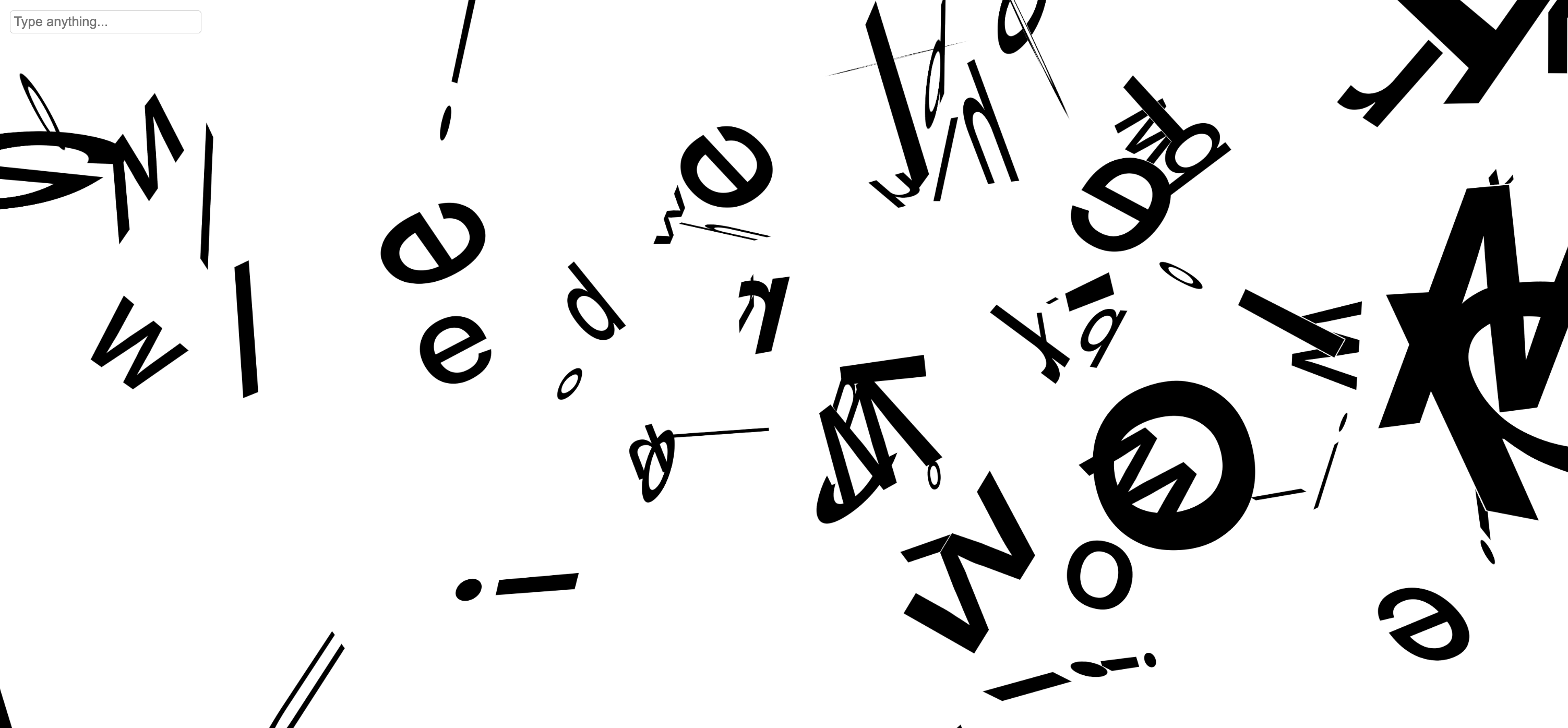 Some experiments broke legibility entirely, others felt visually flat, and many collapsed under messy overlap or motion that was too chaotic to read. Balancing aesthetic expressiveness with textual clarity became a recurring struggle. I also had to navigate issues like inconsistent frame behaviour, unstable 3D perspectives, and performance drops when too many characters were moving at once.