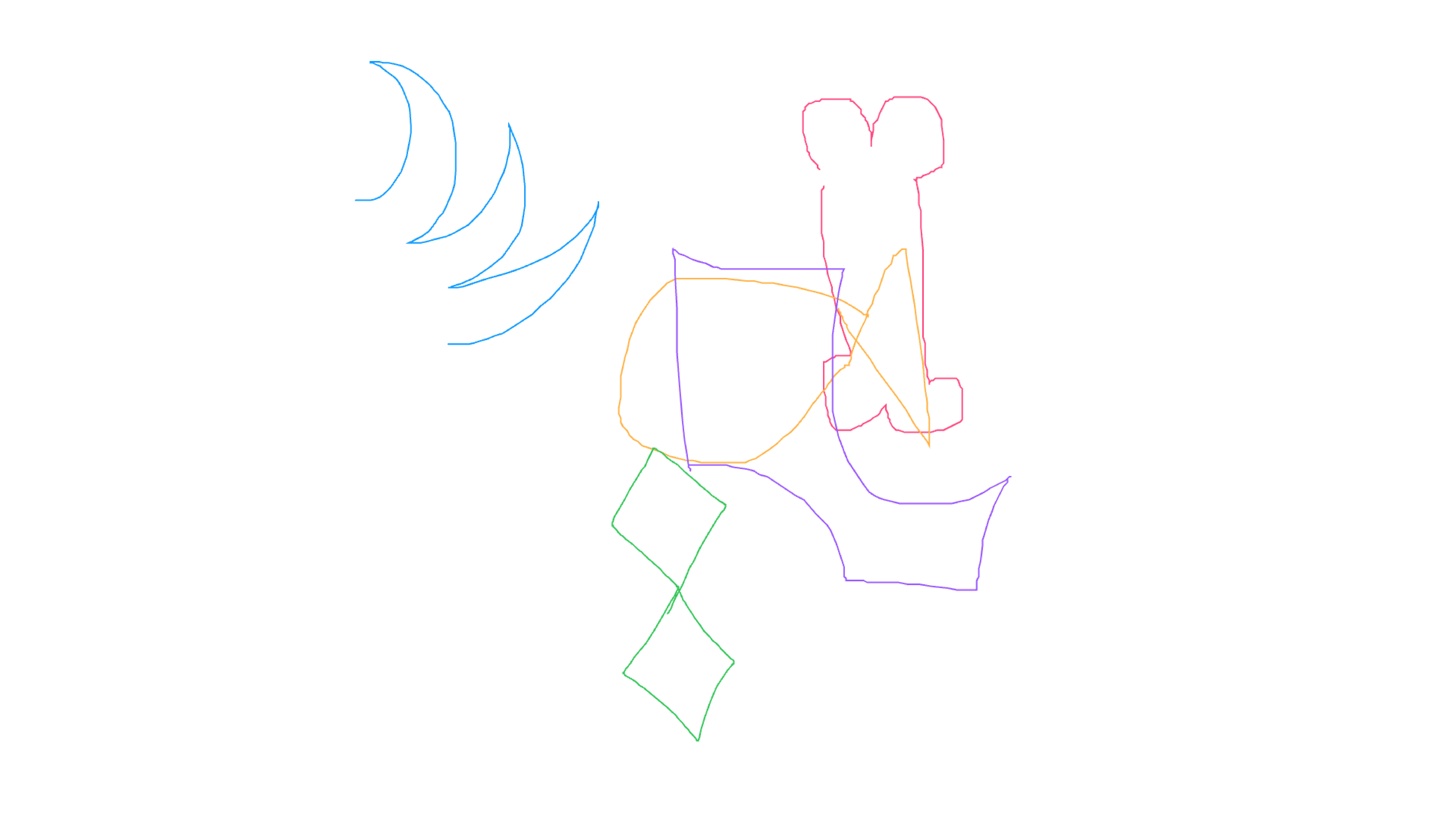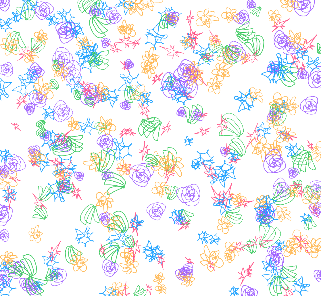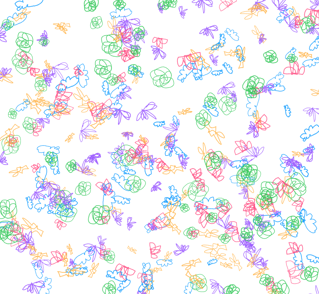 In the early stages of this prototype, the system simply populated the entire screen with the user’s five drawings once all shapes were completed. Visually, it was engaging, but conceptually it fell short. It showed repetition, not reduction. Nothing about that sequence revealed the core idea I was trying to explore: how human gestures are progressively stripped of meaning as they pass through computational processes.