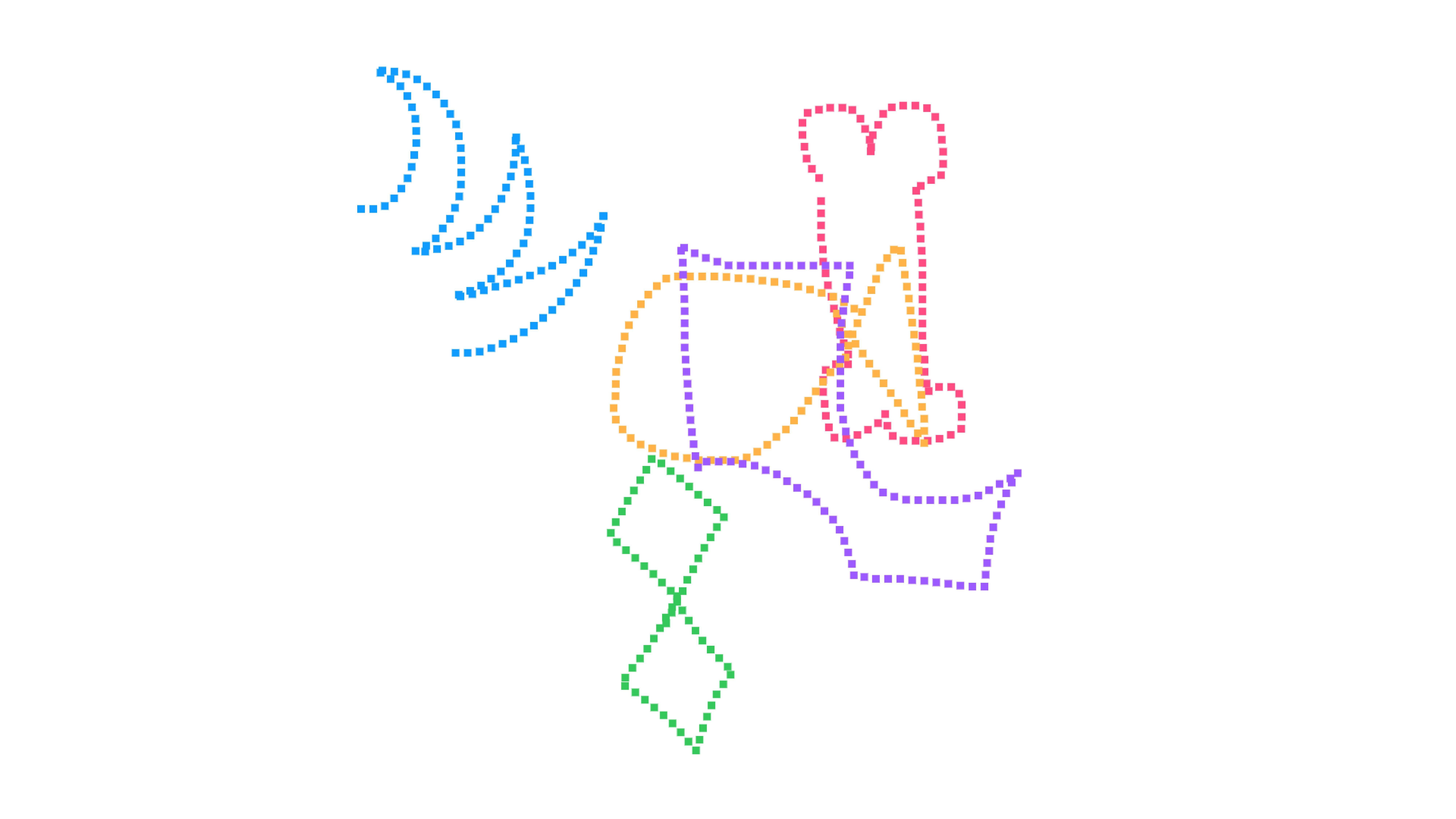⑵ Pixels break that gesture into a grid, mimicking early digital capture technologies that compress curves into discrete units.