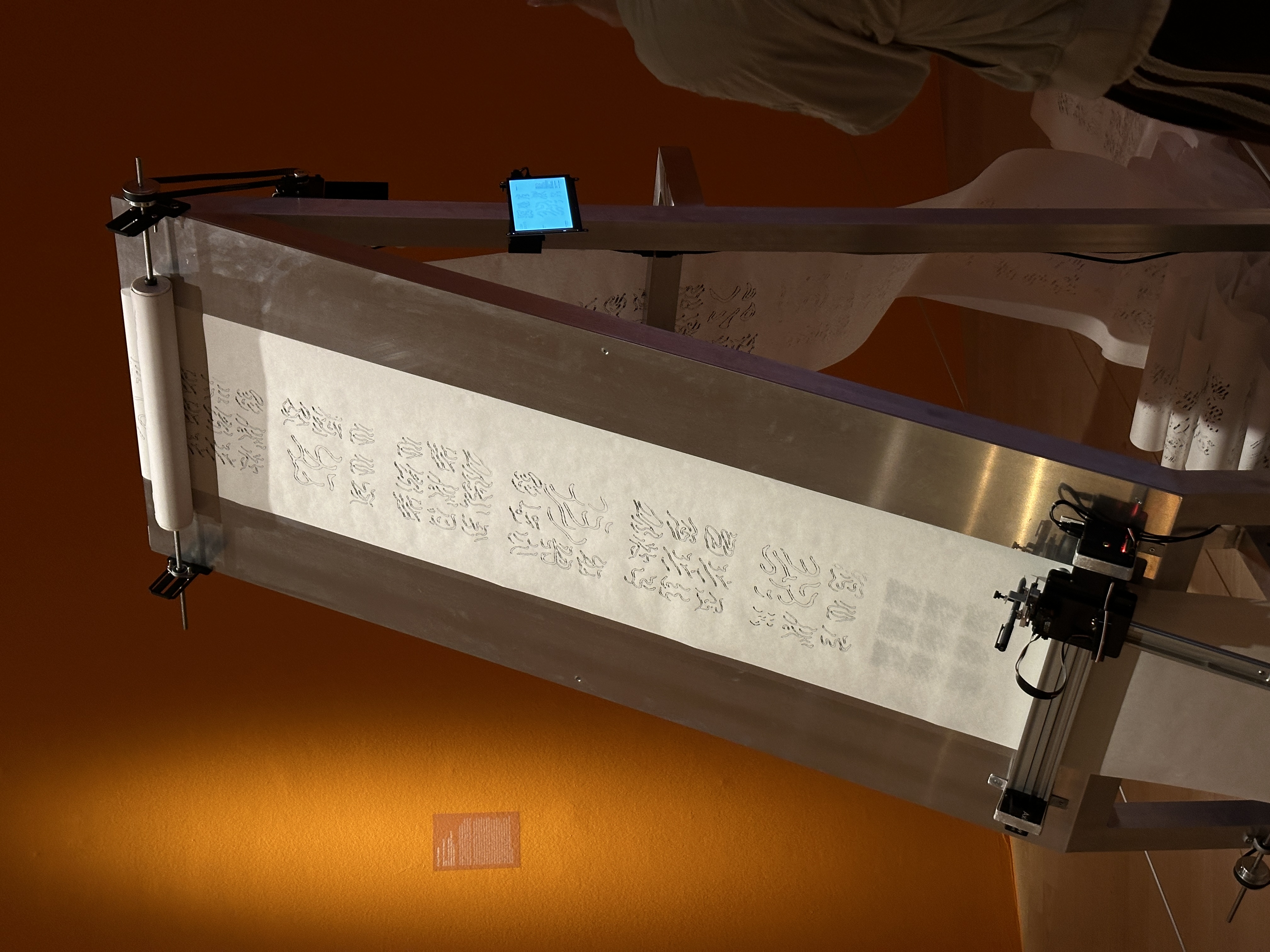 This is my favourite piece of work from the entire exhibition. Ong's work was the most outstanding, and it impressed me with its ability to turn code/data into something poetic and ritualistic. The seals don't carry literal meaning but evoke spiritual, symbolic resonance. That transformation from algorithmic logic into symbolic form is neat. The conceptual layering is rich as he draws from Daoist traditions of writing as sacred/spiritual communication, and posits that machines and code can act as mediators or translators of that. It also subtly critiques modern machine logic (efficiency, speed, abstraction) by re-introducing a slower, mediative machine practice oriented toward nature, spirit, ritual.