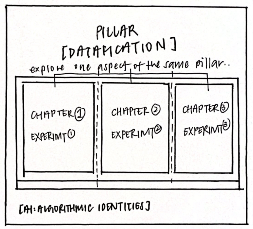During the consultation, the idea of “chapters” was clarified as a metaphor rather than a structural requirement. Instead of referring to literal book chapters, Andreas described it as a shelf with multiple compartments, where each compartment represents an experiment. The issue was not the individual works, but the absence of a clear connective logic that allows them to function as a coherent whole. This reframing made it evident that my experiments need to be understood relationally; each one linking to the next under a single unifying pillar.
