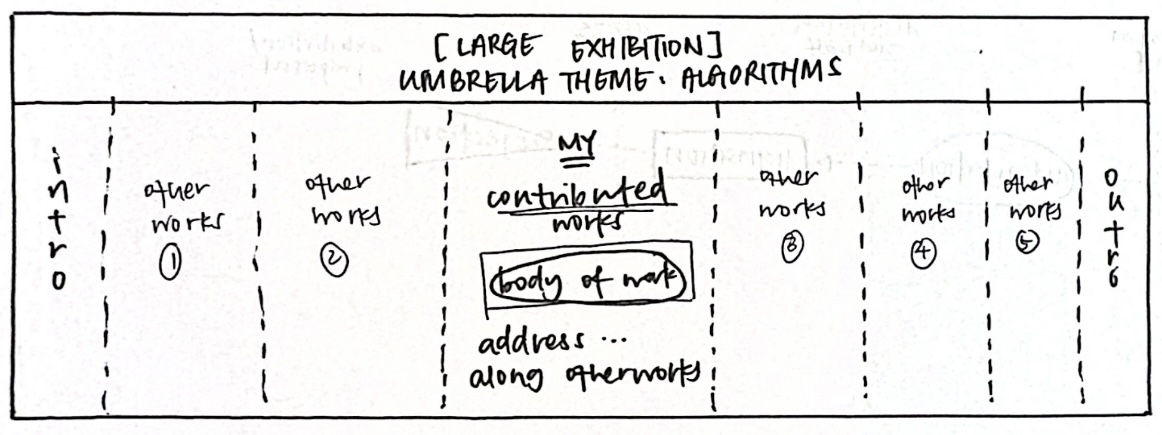 Importantly, this proposal does not need to be realised; it can exist as a speculative contribution that could sit within a larger exhibition on algorithms, rather than a standalone curated show. Framing my work as a contributor rather than a curator significantly narrows the scope and strengthens focus. Moving into the next phase, especially if working with physical materials, the priority is to strengthen the conceptual grounding of the work: answering why a material, interaction, or form is chosen before considering technological execution.