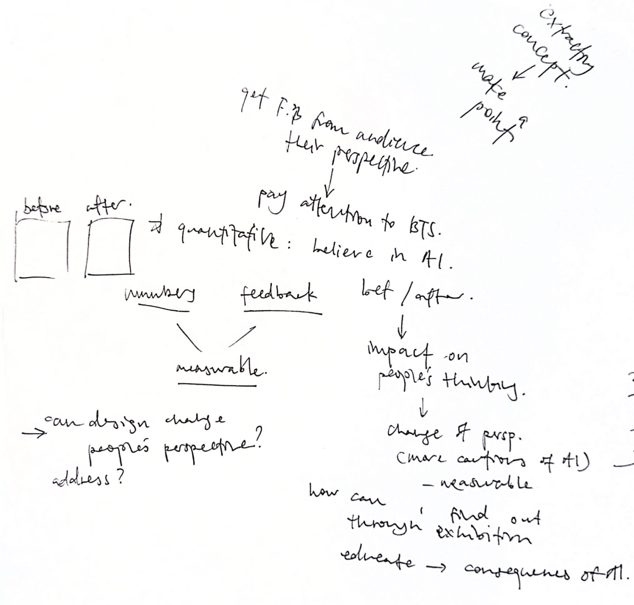 Up to this point, I finally reached the point in the project where I began to struggle with translating abstract concepts into a physical outcome that makes a clear point. This difficulty surfaced the core challenge of the work: extracting an argument from theory and expressing it through material form. Through discussion, we reframed the problem by starting with the exhibition concept, rather than the object itself, using a before-and-after framework to examine how interaction might shift participants' perspectives.