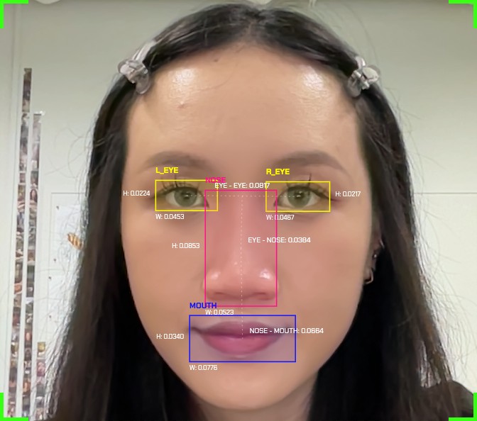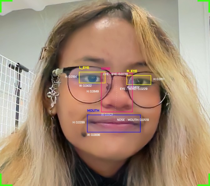 I developed Face Value through an iterative dialogue with Gemini 3 in Google's AI Studio, where I translated my conceptual intent into functional instructions. I described how the screen should mirror the familiarity of Face ID where users see themselves framed and scanned. It is reframed as a critical illustration rather than a seamless authentication tool. Gemini helped generate the foundational files, which I refined to align with the exhibit's focus on biometric data. The system uses MediaPipe to detect and isolate facial landmarks such as left eye, right eye, nose, and mouth. It turns each landmark into measurable coordinates displayed live on screen.