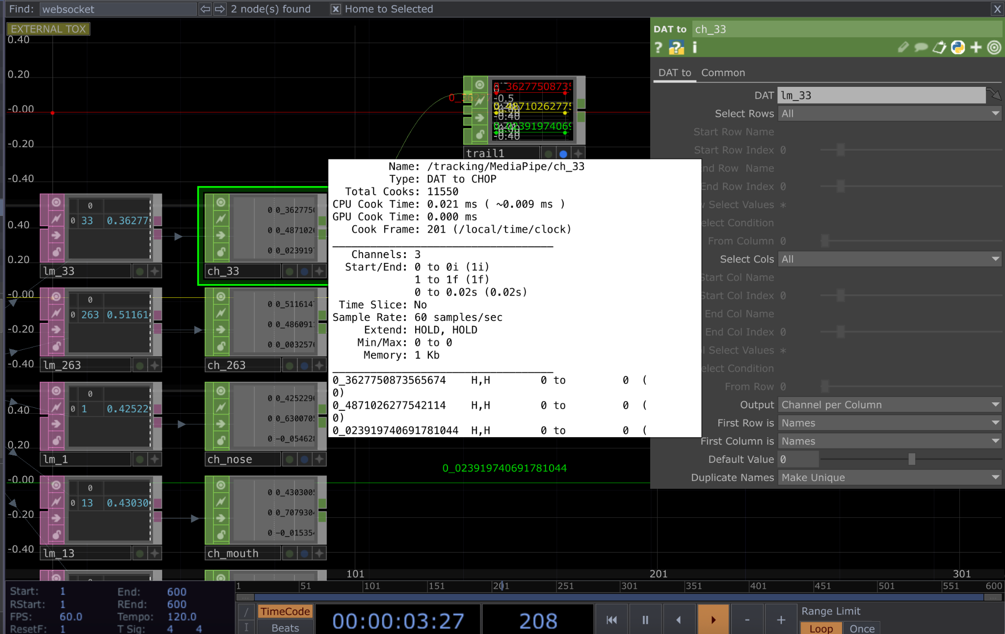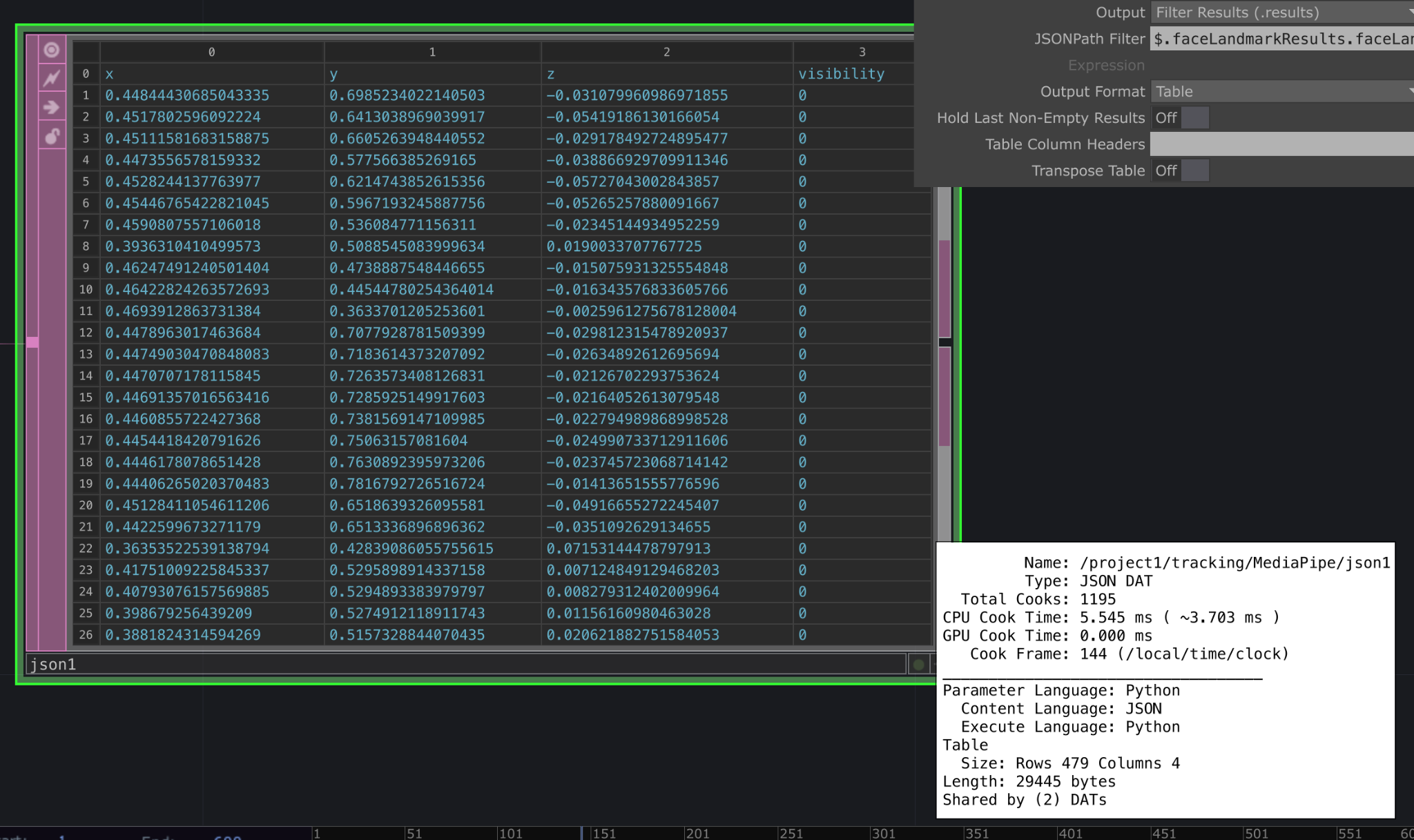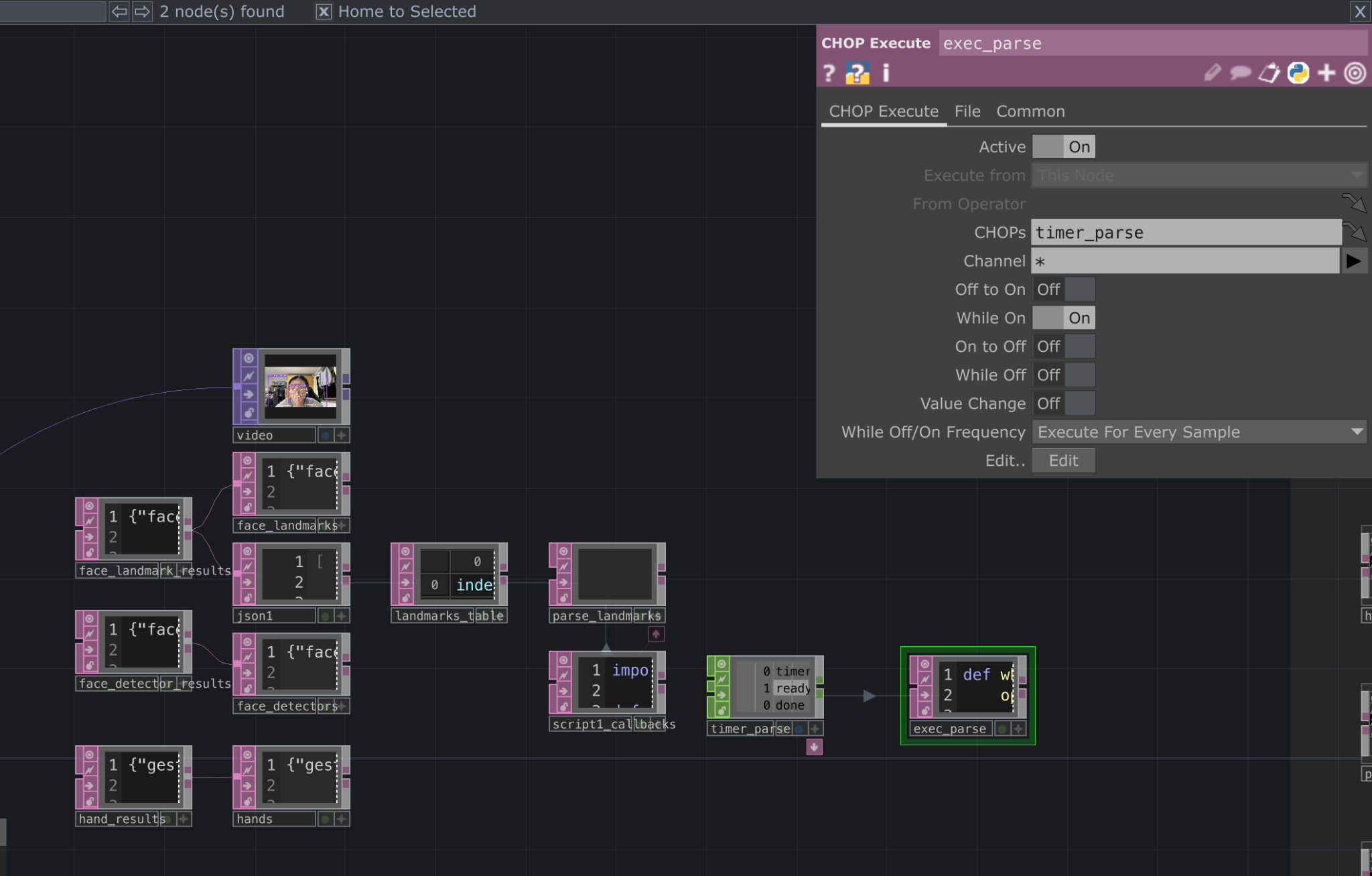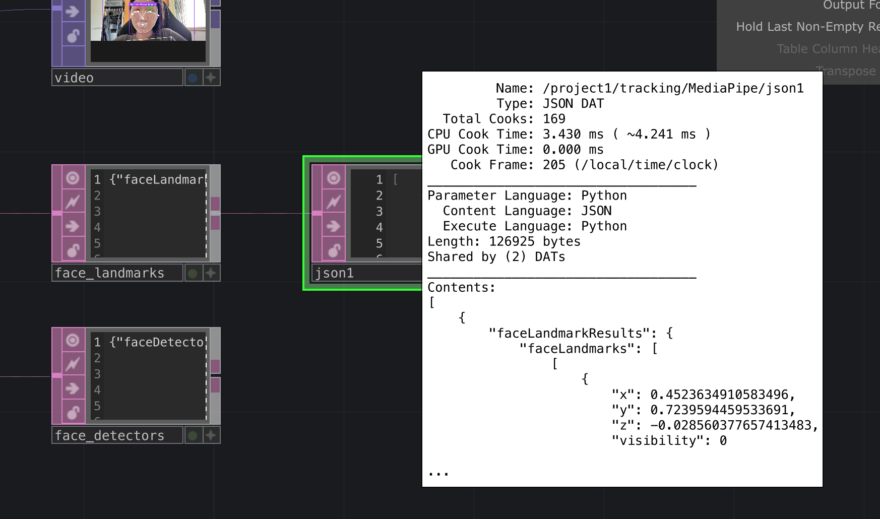 Building this system in TouchDesigner was far more frustrating than I expected. Every time I reopened the file, the camera would stop communicating with MediaPipe, nodes would disappear, or connections would break. What worked perfectly one night would fail the next morning, probably a skill issue of mine. I rebuilt the network from scratch five separate times. I had to reconfigure the system, re-parse JSON, reconstruct the landmark tables, only for it to face the same instability again.
